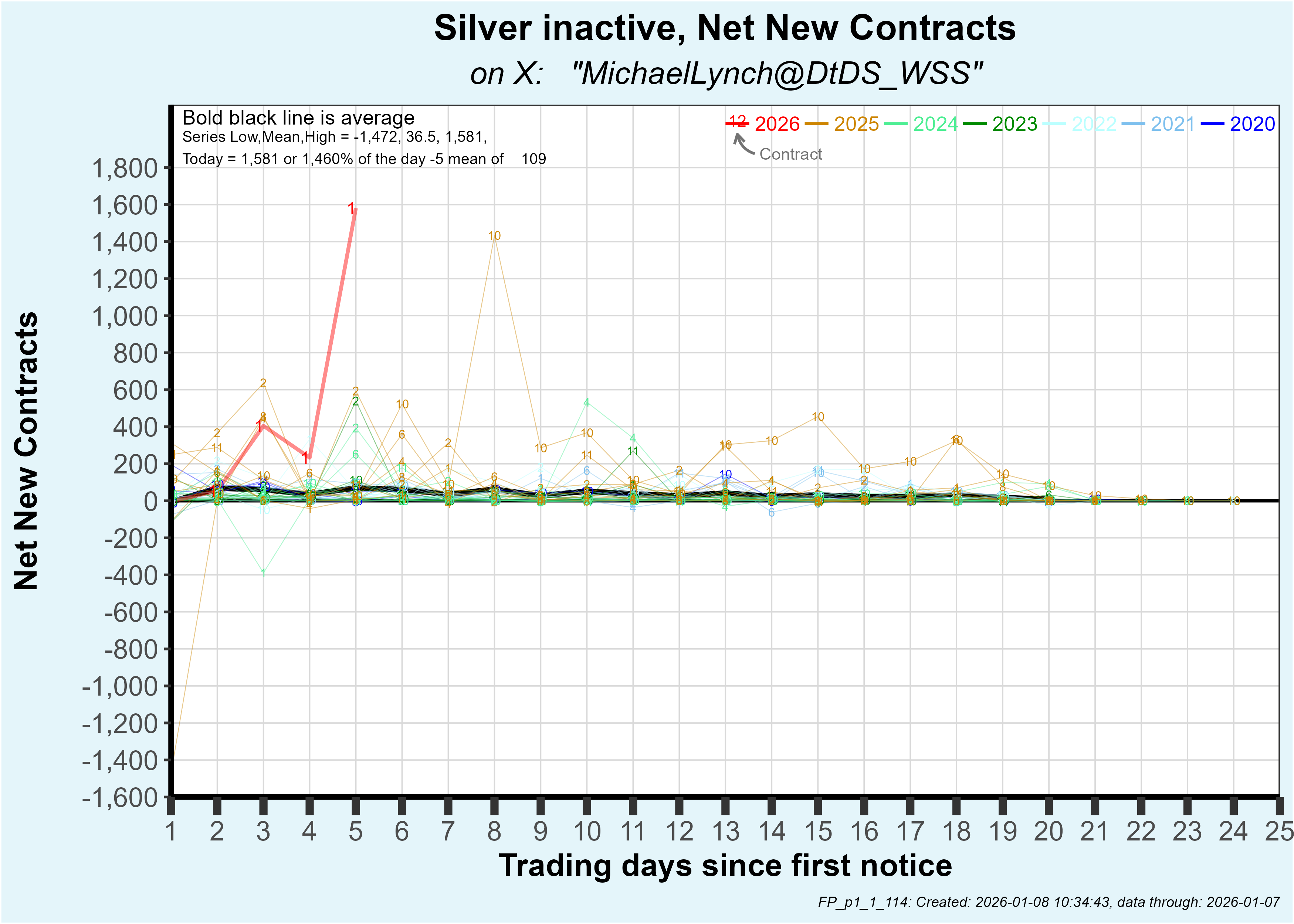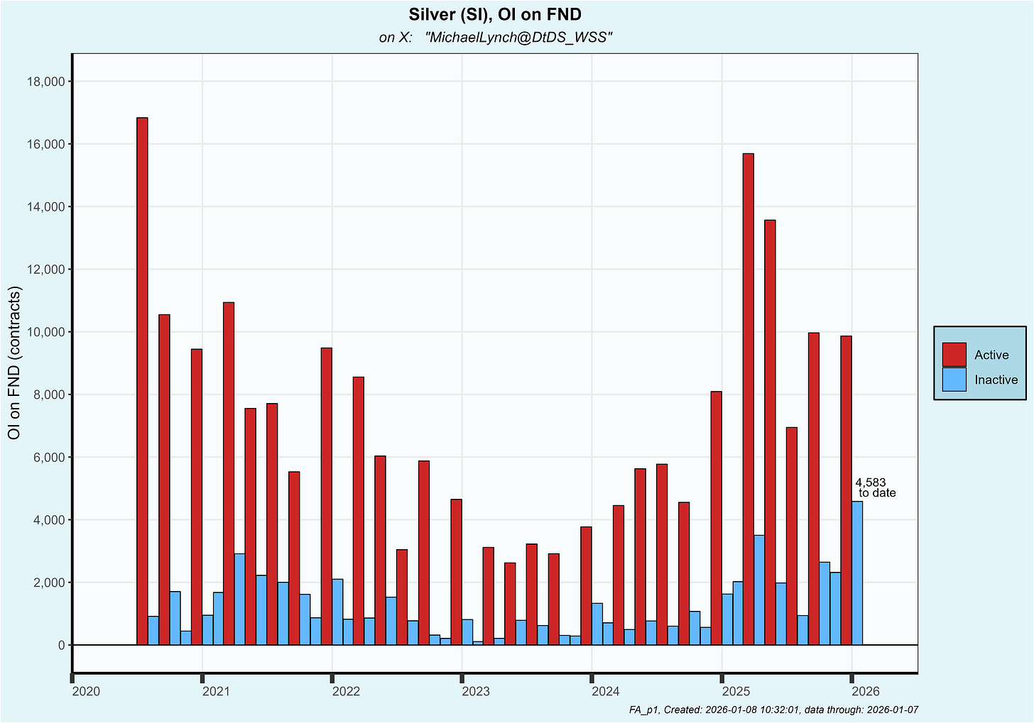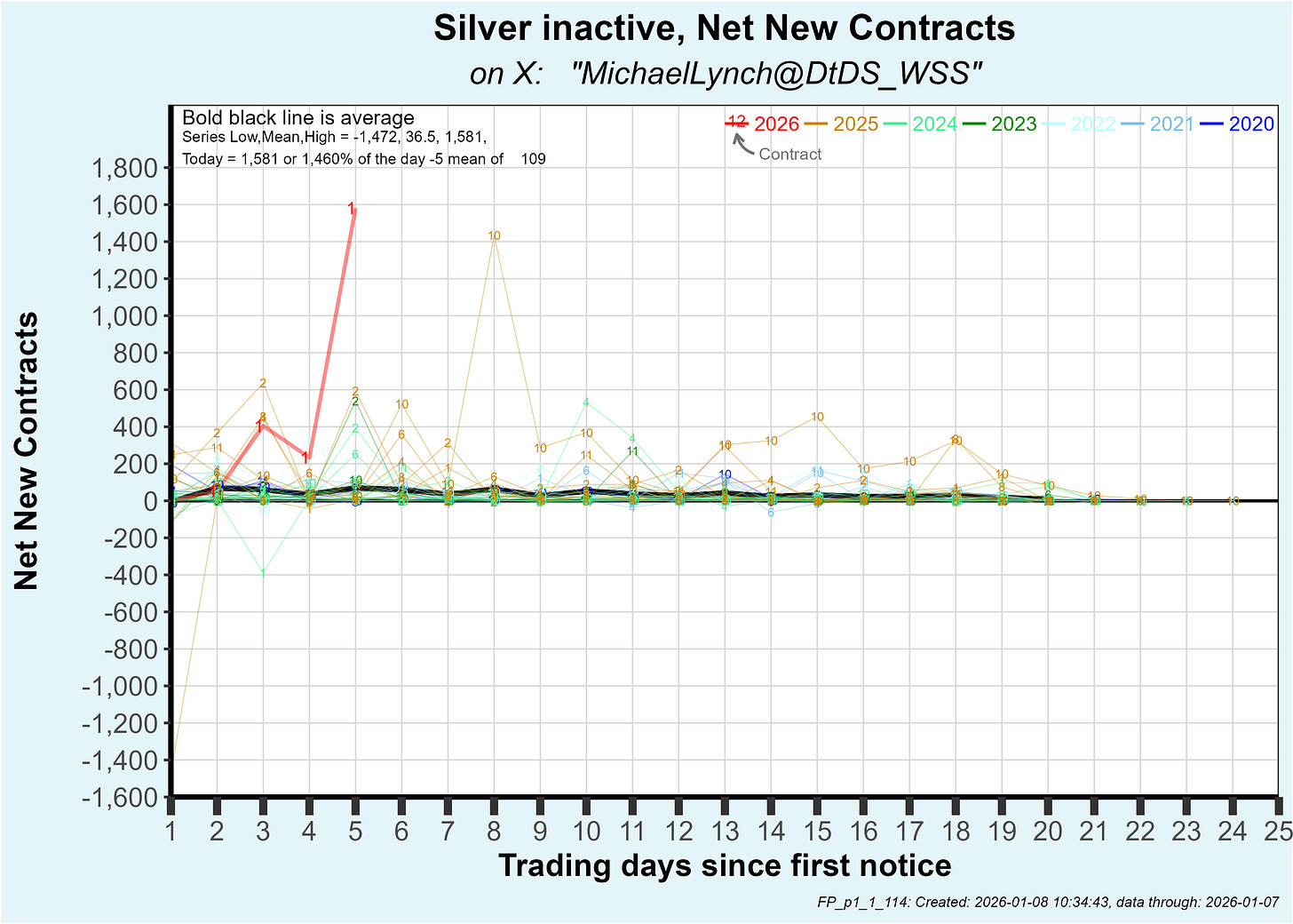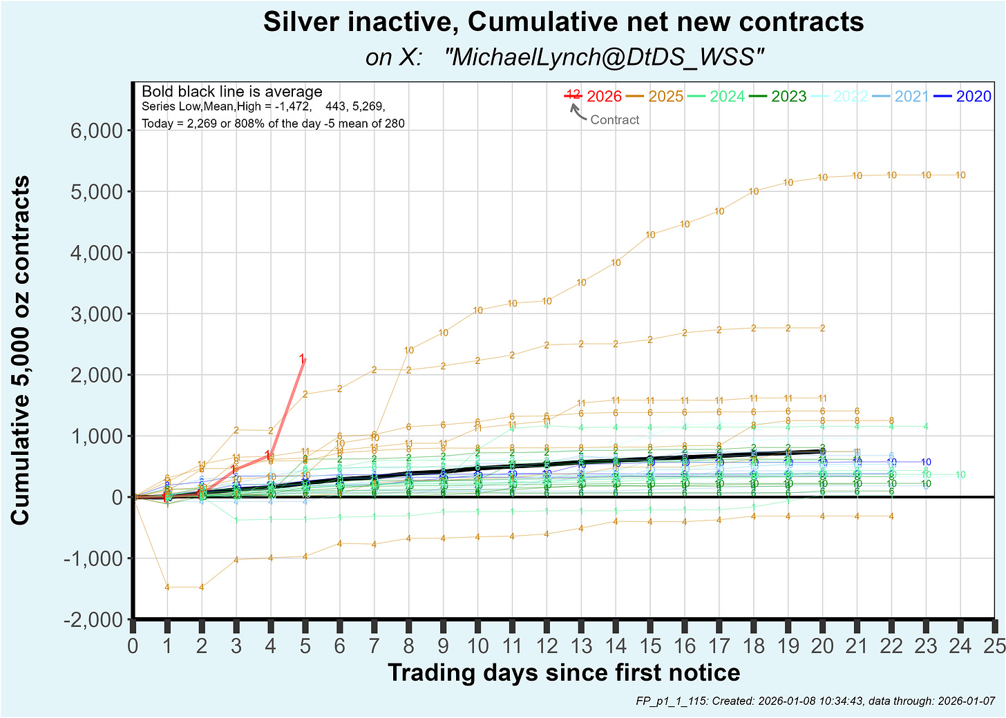 So far, deliveries are now 6,321 contracts or 31.6 million oz which is about twice the previous record high at this point in the delivery period (which was set by several contracts in 2025).