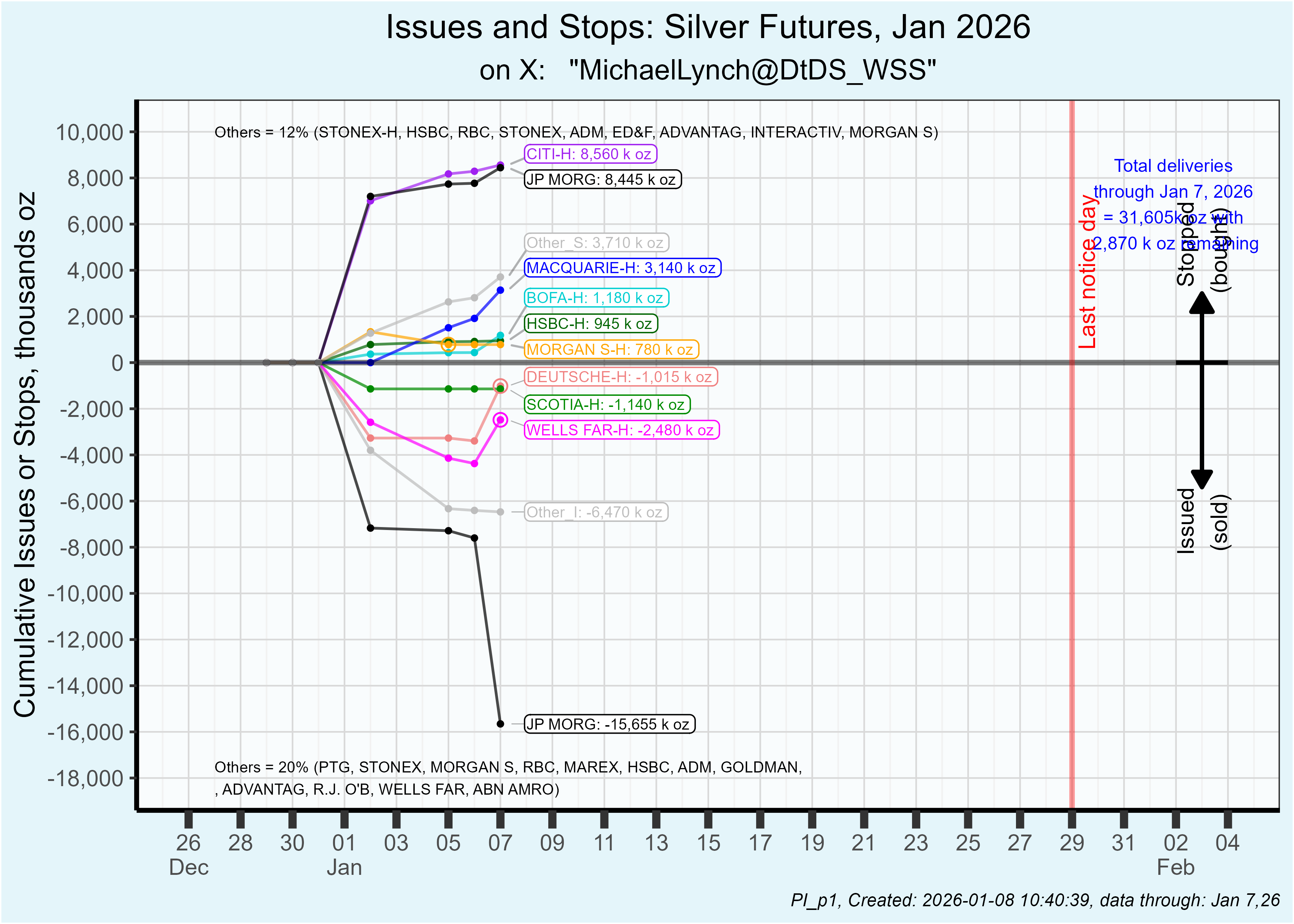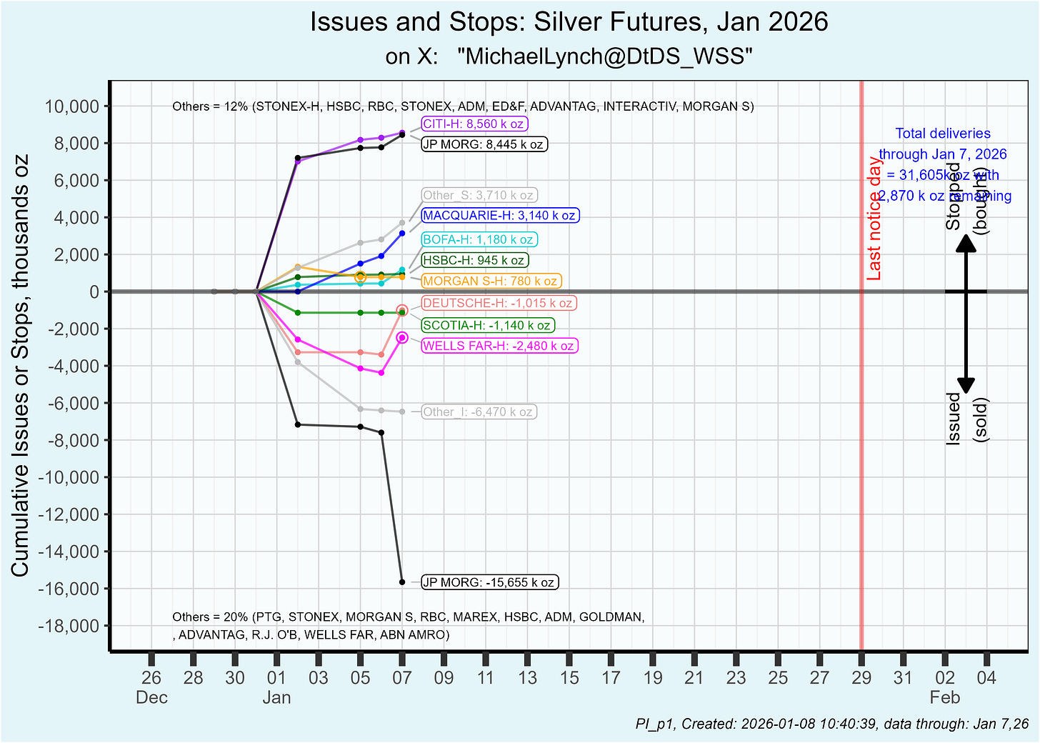 A lot of rumors about DB (again). They were forced out of a (house account) 3m short at the end of 2025, which was confirmed by CME. Buyers were JPM (client account) and HSBC & Citi (both house account). Suggestions are that they are the main "non-US bank" sitting on a huge short.